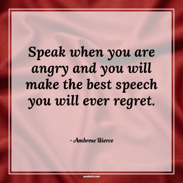 Speak when you are angry and you will make the best speech you will ever regret.