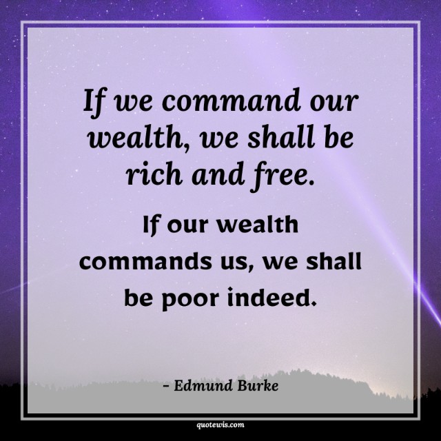 If we command our wealth, we shall be rich and free. If our wealth commands us, we shall be poor indeed.