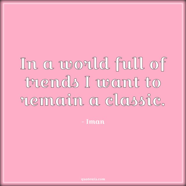In a world full of trends I want to remain a classic.