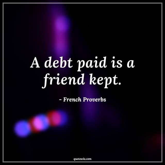 A debt paid is a friend kept.