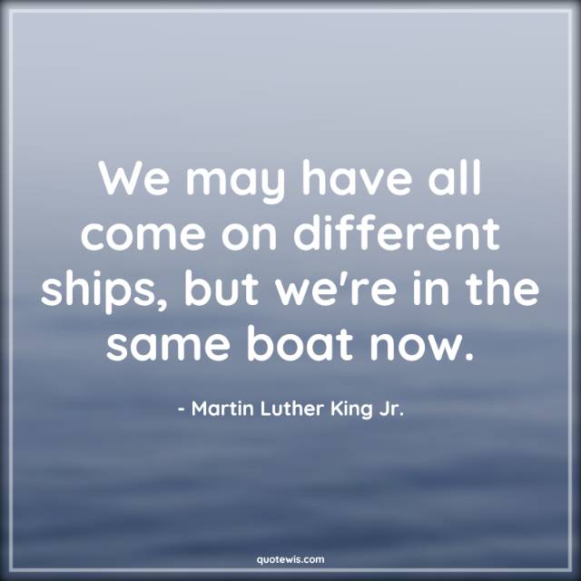 We may have all come on different ships, but we're in the same boat now.