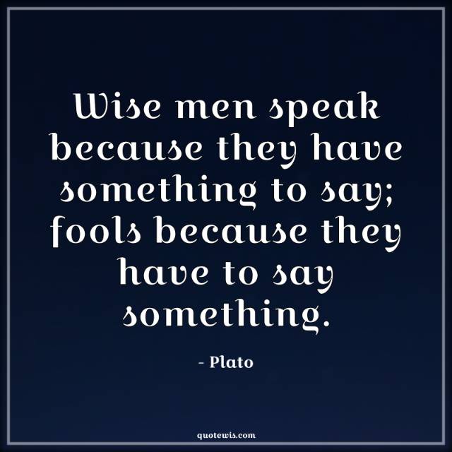 Wise men speak because they have something to say; fools because they have to say something.