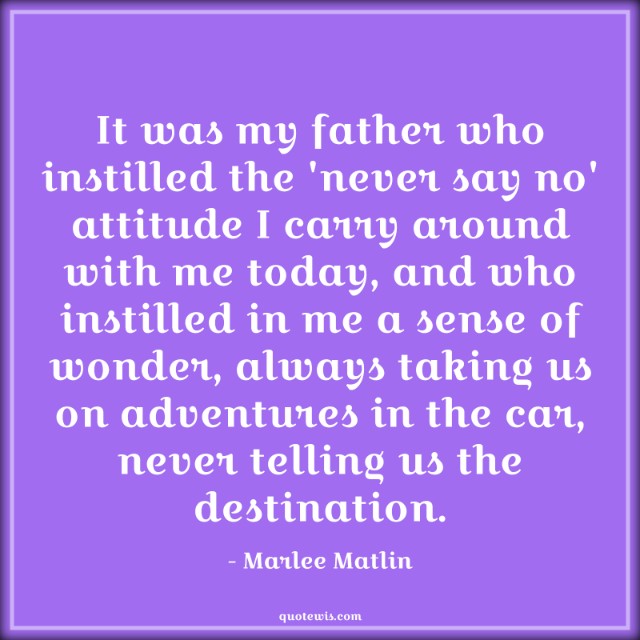 It was my father who instilled the 'never say no' attitude I carry around with me today, and who instilled in me a sense of wonder, always taking us on adventures in the car, never telling us the destination.