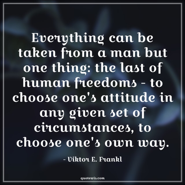 Everything can be taken from a man but one thing: the last of human freedoms - to choose one's attitude in any given set of circumstances, to choose one's own way.