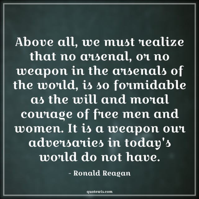 Above all, we must realize that no arsenal, or no weapon in the arsenals of the world, is so formidable as the will and moral courage of free men and women. It is a weapon our adversaries in today's world do not have.