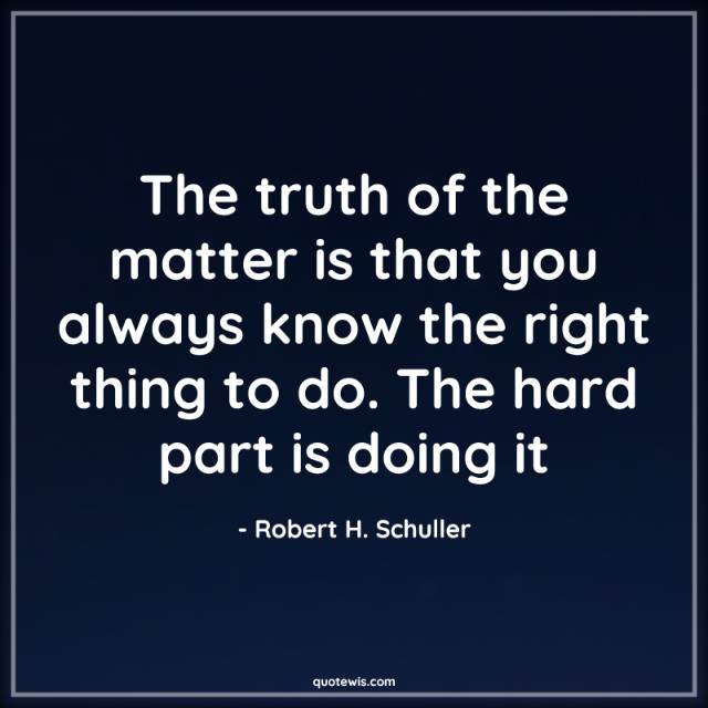 The truth of the matter is that you always know the right thing to do. The hard part is doing it