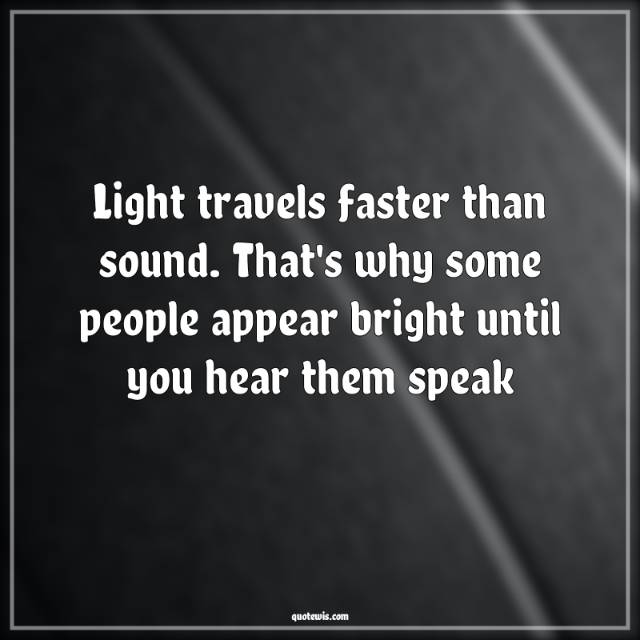 Light travels faster than sound. That's why some people appear bright until you hear them speak