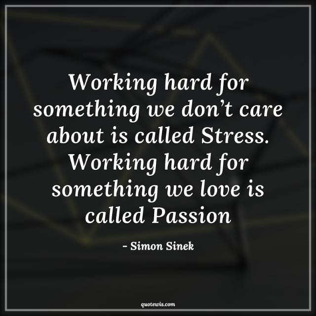 Working hard for something we don’t care about is called Stress. Working hard for something we love is called Passion