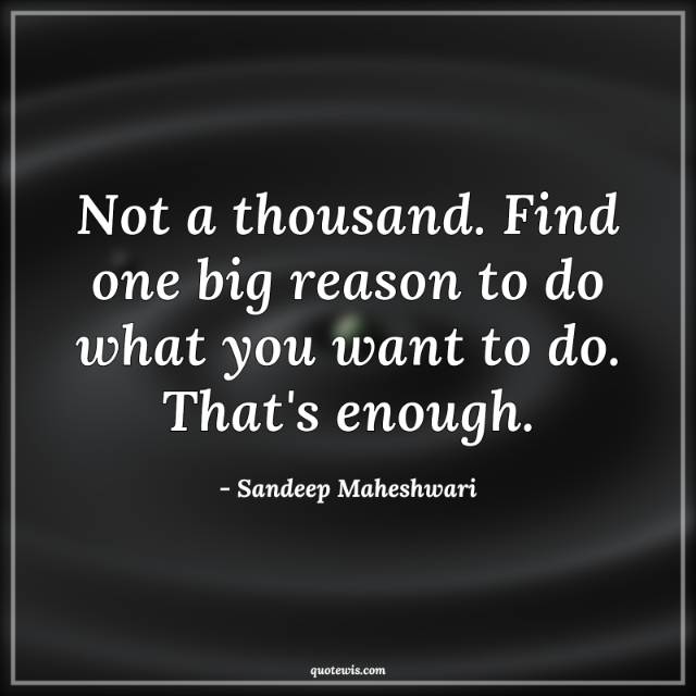 Not a thousand. Find one big reason to do what you want to do. That's enough.