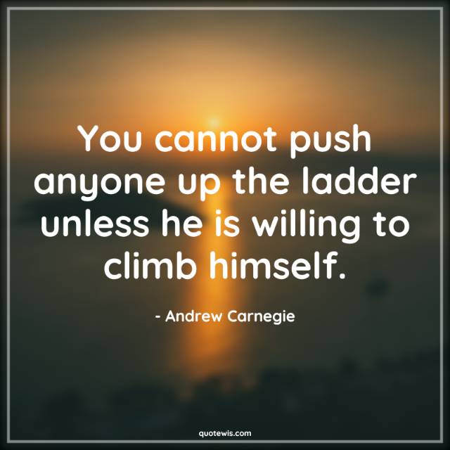 You cannot push anyone up the ladder unless he is willing to climb himself.