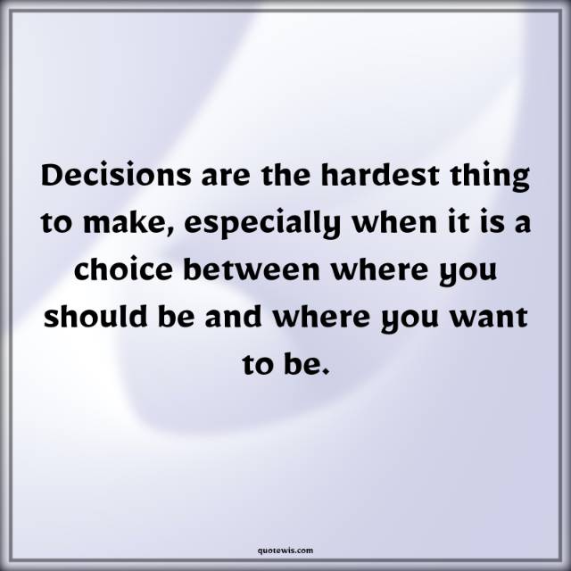 Decisions are the hardest thing to make, especially when it is a choice between where you should be and where you want to be.