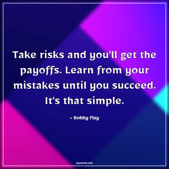 Take risks and you'll get the payoffs. Learn from your mistakes until you succeed. It's that simple.