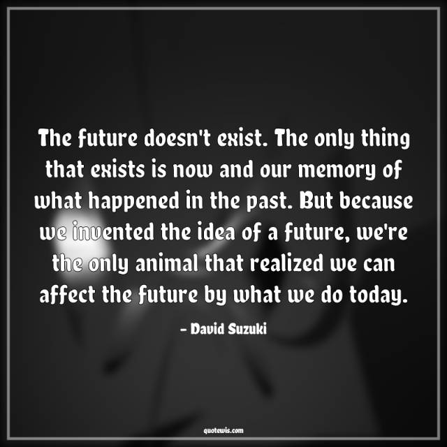The future doesn't exist. The only thing that exists is now and our memory of what happened in the past. But because we invented the idea of a future, we're the only animal that realized we can affect the future by what we do today.