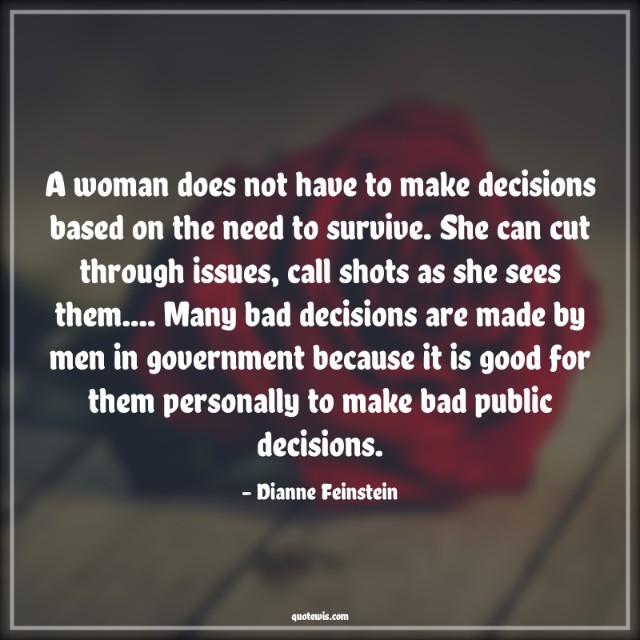 A woman does not have to make decisions based on the need to survive. She can cut through issues, call shots as she sees them.... Many bad decisions are made by men in government because it is good for them personally to make bad public decisions.