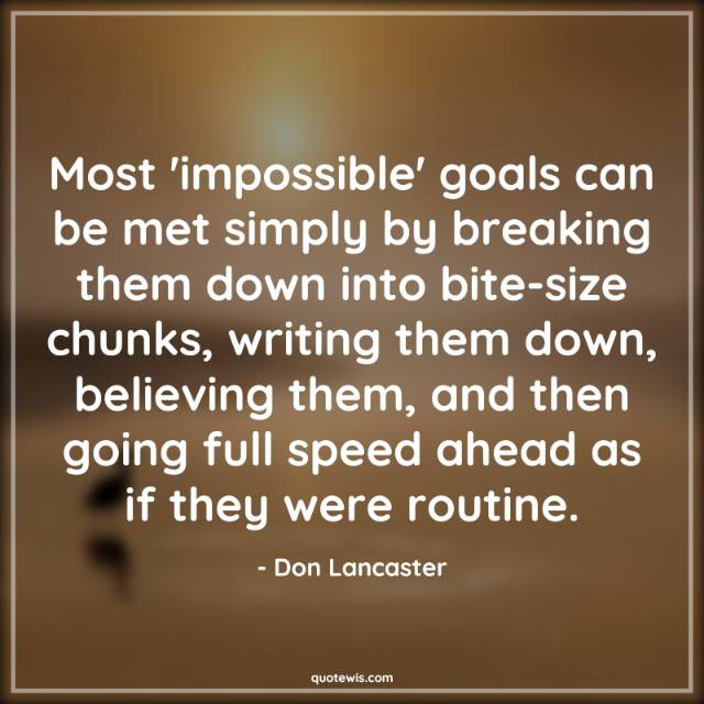 Most 'impossible' goals can be met simply by breaking them down into bite-size chunks, writing them down, believing them, and then going full speed ahead as if they were routine.