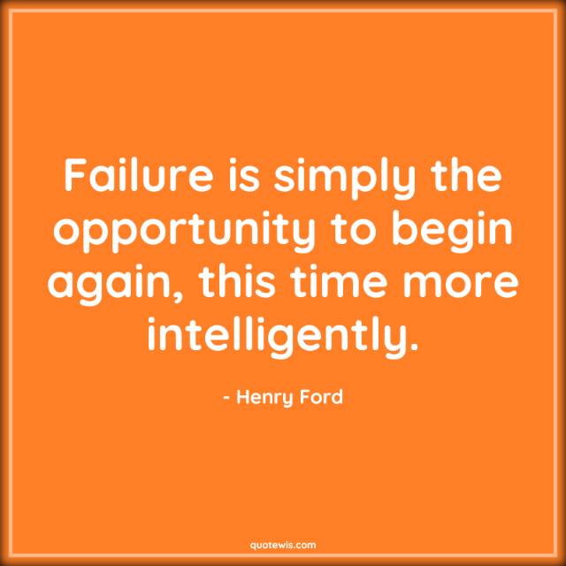 Failure is simply the opportunity to begin again, this time more intelligently.