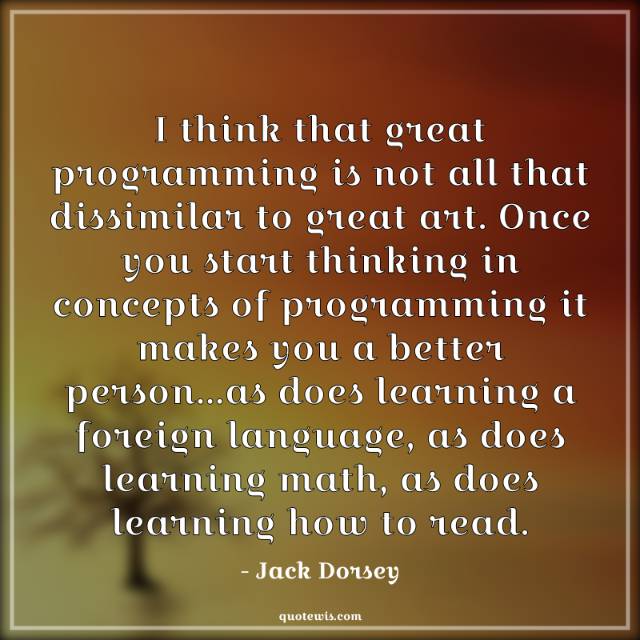 I think that great programming is not all that dissimilar to great art. Once you start thinking in concepts of programming it makes you a better person...as does learning a foreign language, as does learning math, as does learning how to read.
