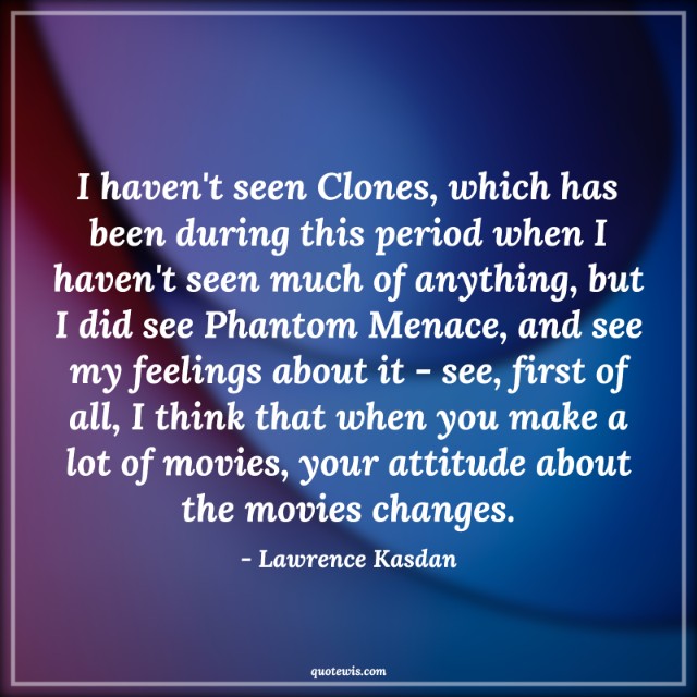 I haven't seen Clones, which has been during this period when I haven't seen much of anything, but I did see Phantom Menace, and see my feelings about it - see, first of all, I think that when you make a lot of movies, your attitude about the movies changes.