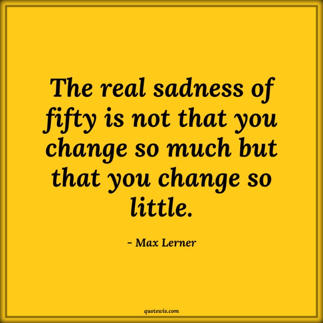 The real sadness of fifty is not that you change so much but that you change so little.