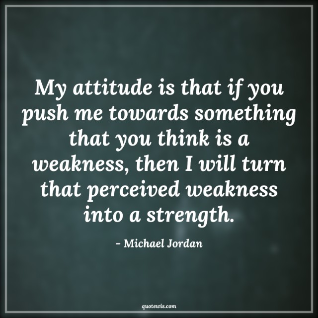 My attitude is that if you push me towards something that you think is a weakness, then I will turn that perceived weakness into a strength.