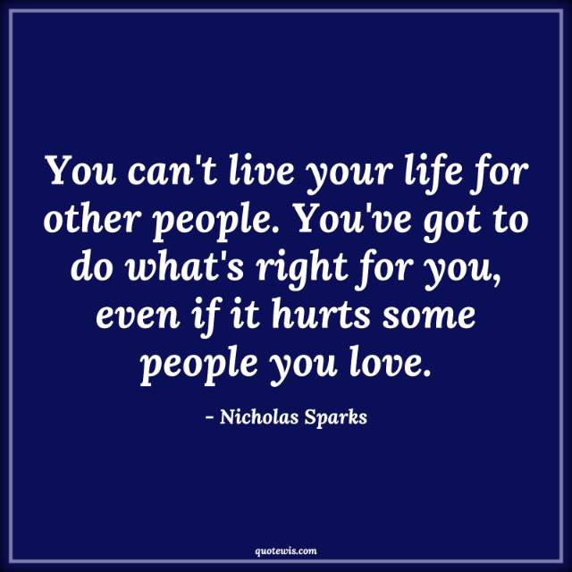 You can't live your life for other people. You've got to do what's right for you, even if it hurts some people you love.