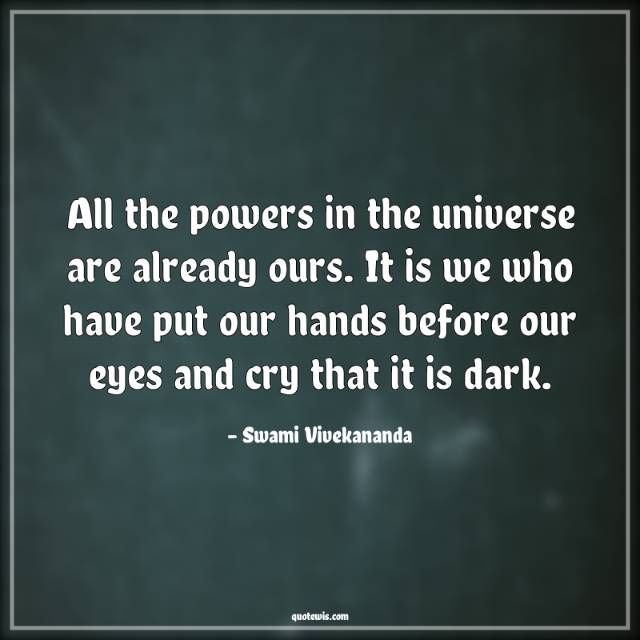 All the powers in the universe are already ours. It is we who have put our hands before our eyes and cry that it is dark.