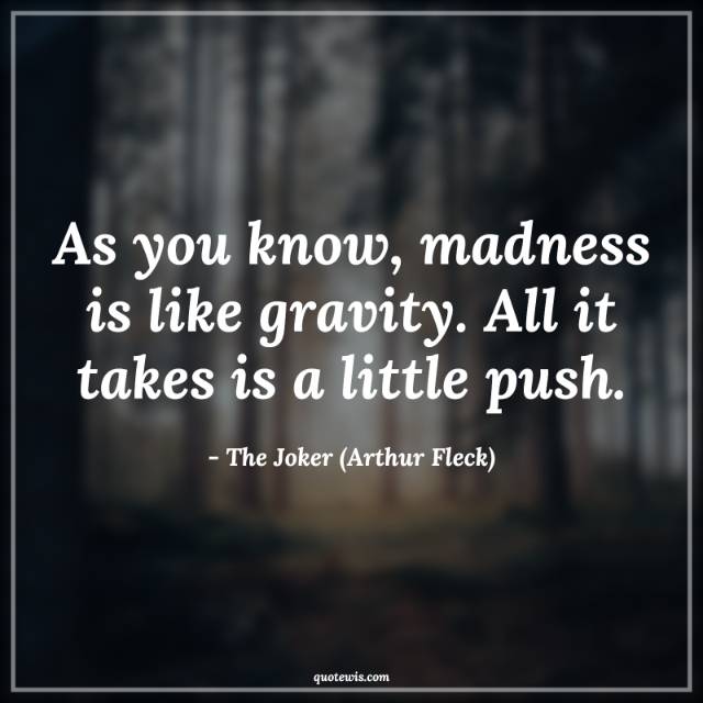 As you know, madness is like gravity. All it takes is a little push.