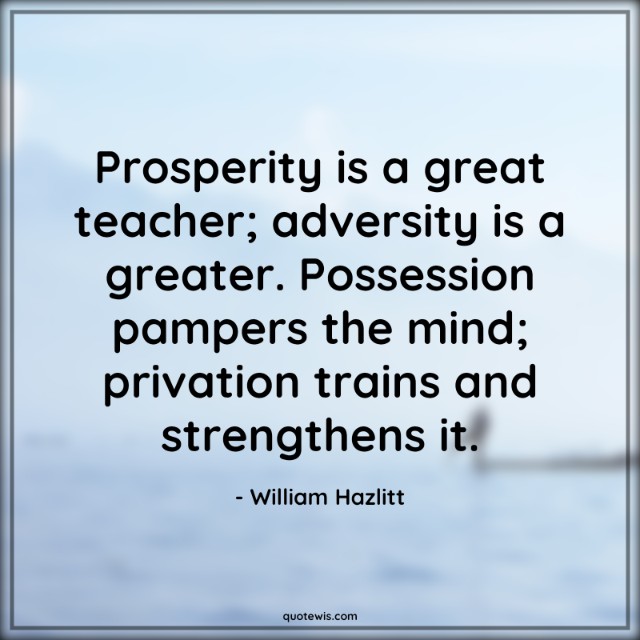 Prosperity is a great teacher; adversity is a greater. Possession pampers the mind; privation trains and strengthens it.