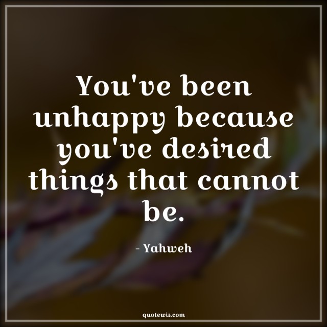 You've been unhappy because you've desired things that cannot be.