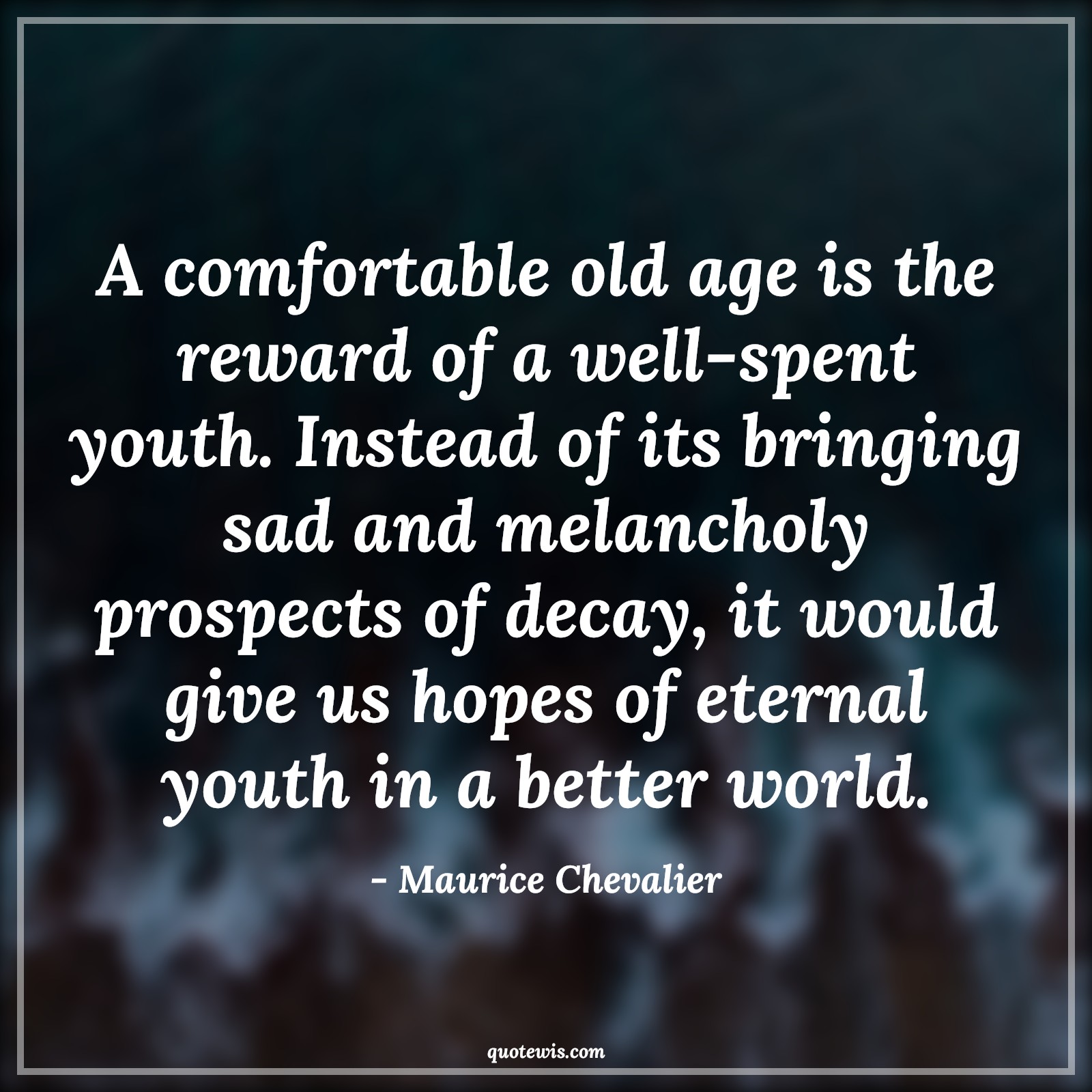 A comfortable old age is the reward of a well-spent youth. Instead of its bringing sad and melancholy prospects of decay, it would give us hopes of eternal youth in a better world.