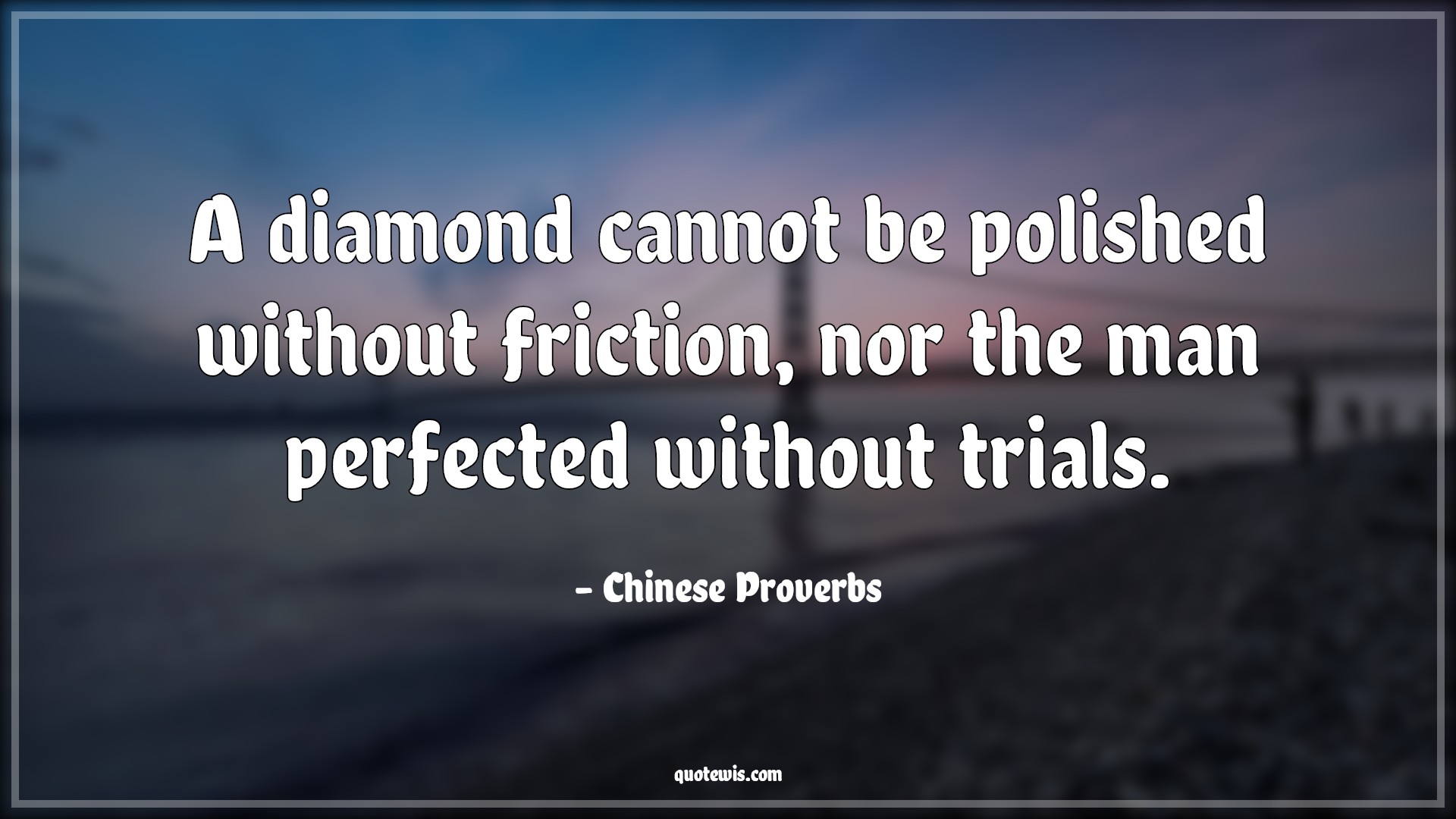 A diamond cannot be polished without friction, nor the man perfected without trials.