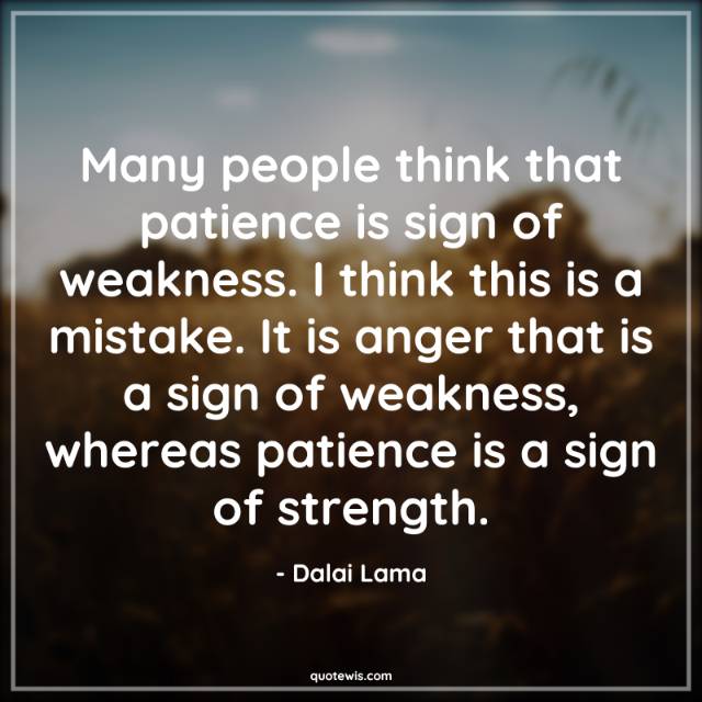 Many people think that patience is sign of weakness. I think this is a mistake. It is anger that is a sign of weakness, whereas patience is a sign of strength.