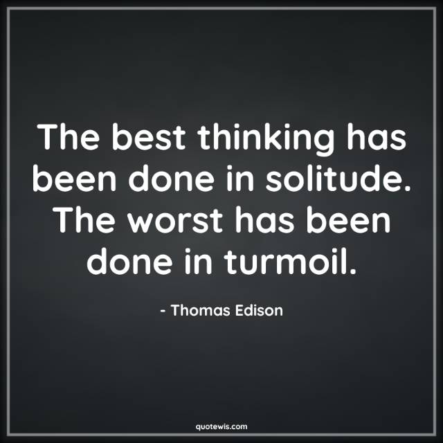 The best thinking has been done in solitude. The worst has been done in turmoil.