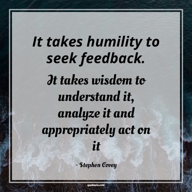 It takes humility to seek feedback. It takes wisdom to understand it, analyze it and appropriately act on it