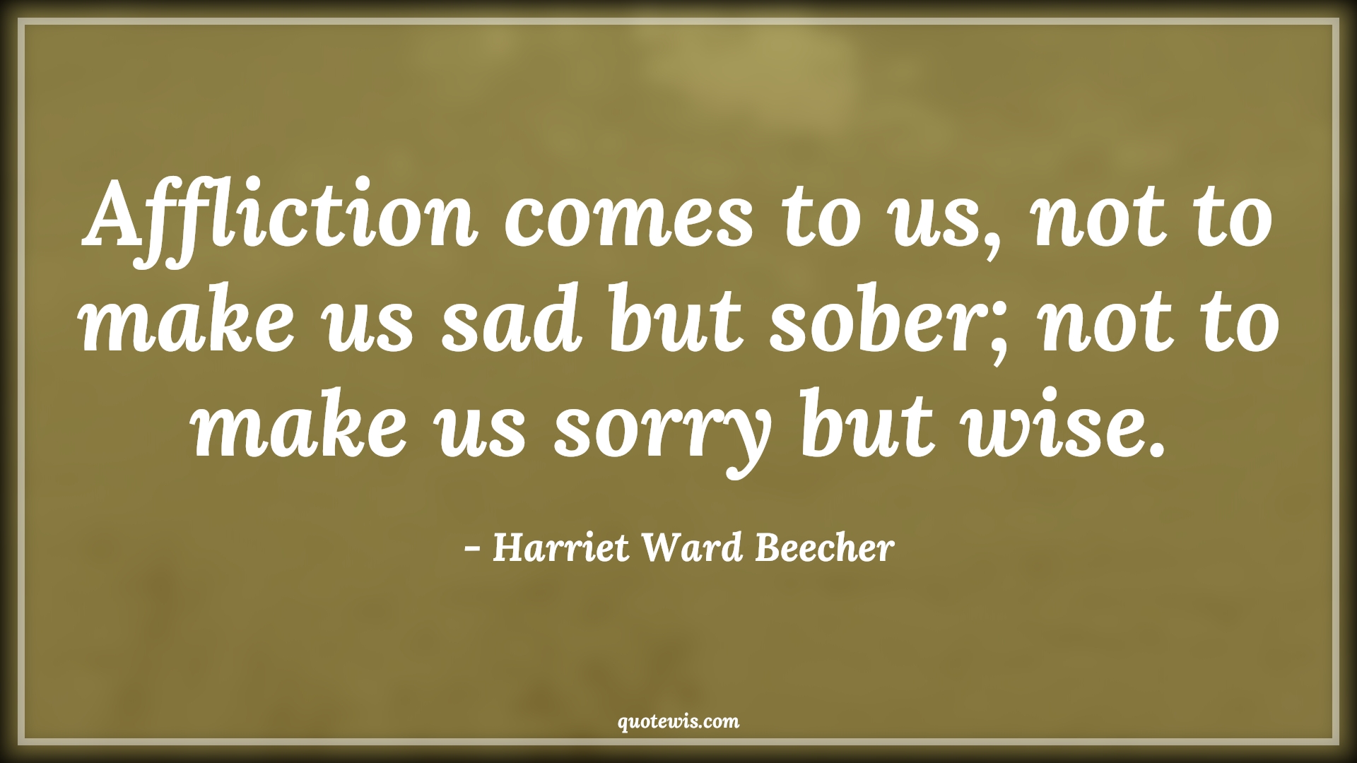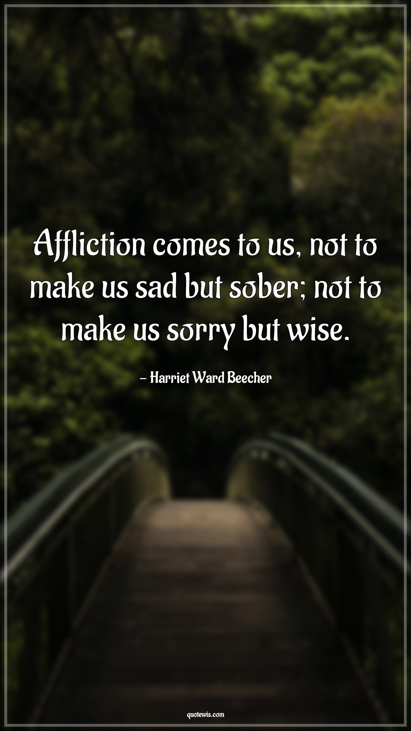 Affliction comes to us, not to make us sad but sober; not to make us sorry but wise.