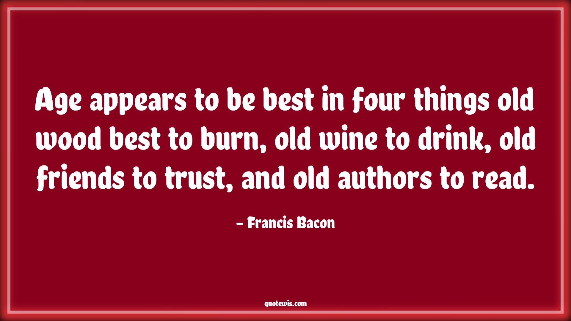 Age appears to be best in four things old wood best to burn, old wine to drink, old friends to trust, and old authors to read.