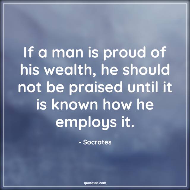 If a man is proud of his wealth, he should not be praised until it is known how he employs it.