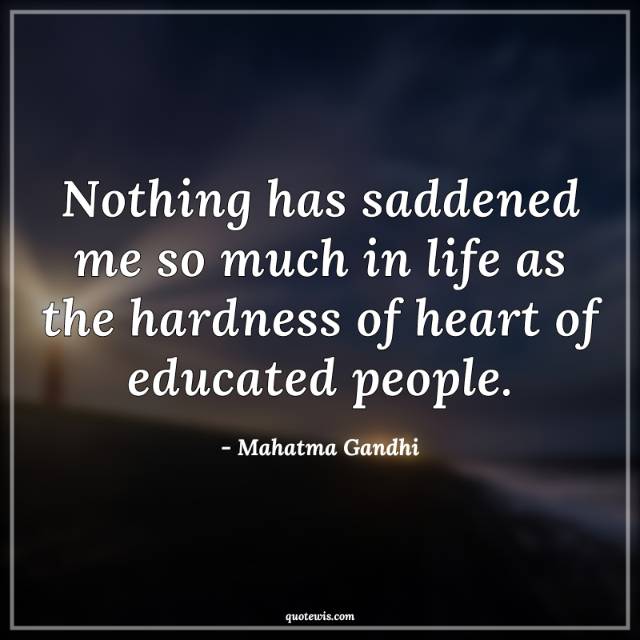 Nothing has saddened me so much in life as the hardness of heart of educated people.