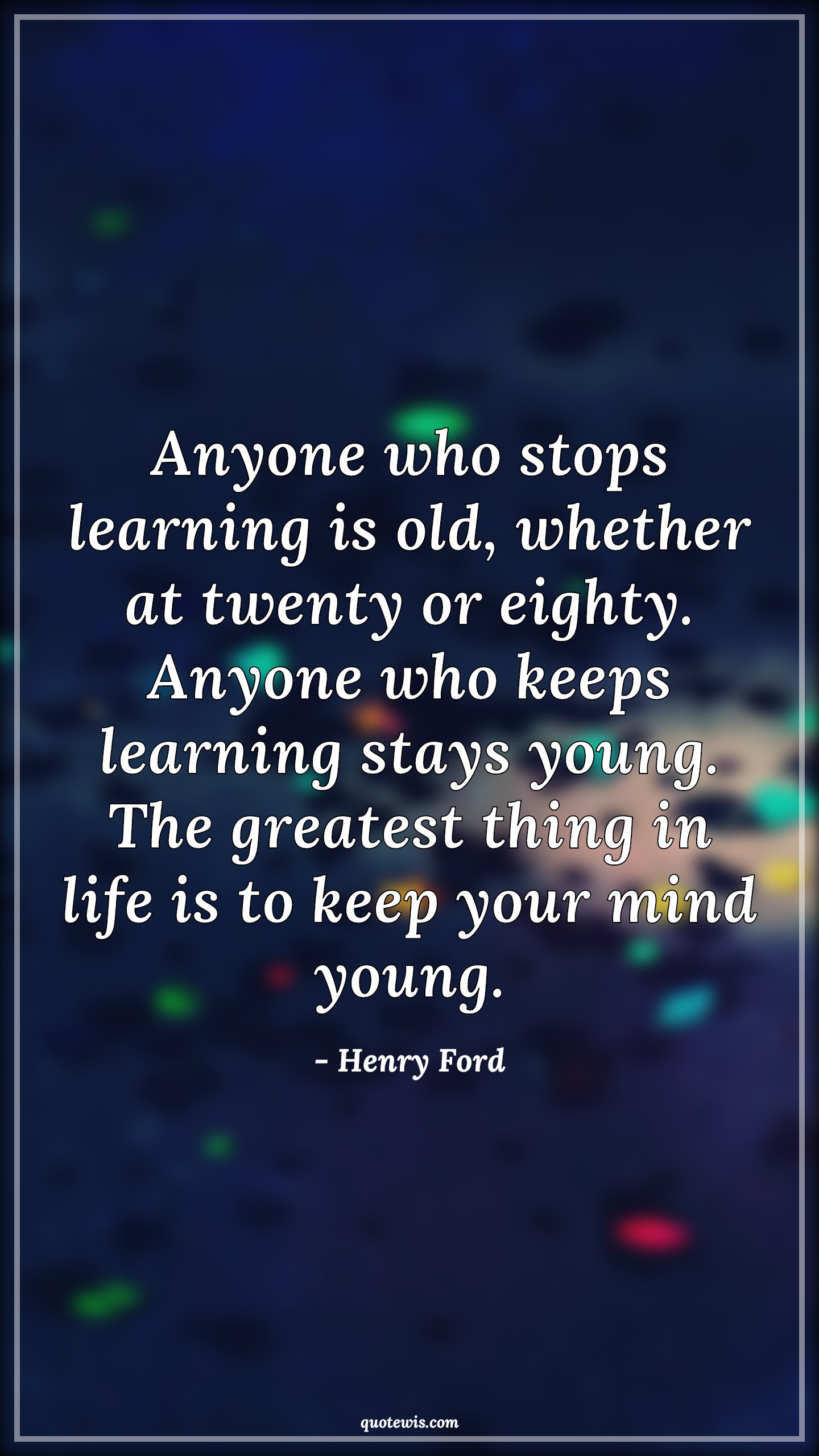 Anyone who stops learning is old, whether at twenty or eighty. Anyone who keeps learning stays young. The greatest thing in life is to keep your mind young.