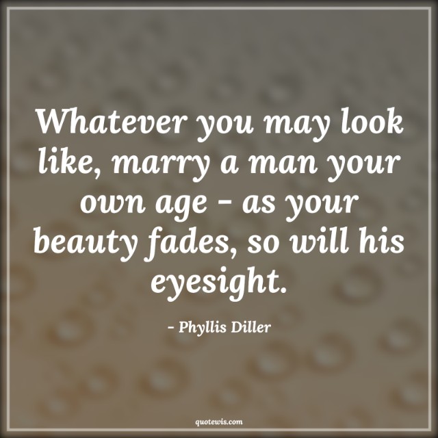 Whatever you may look like, marry a man your own age - as your beauty fades, so will his eyesight.