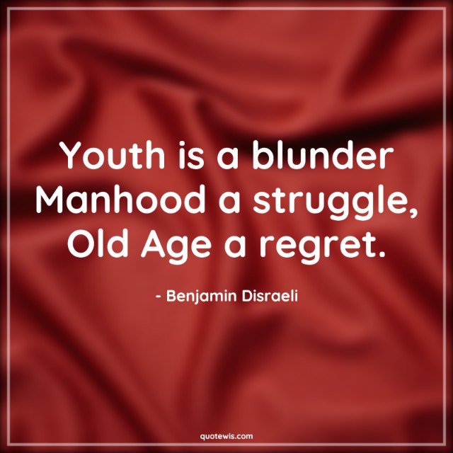 Youth is a blunder Manhood a struggle, Old Age a regret.