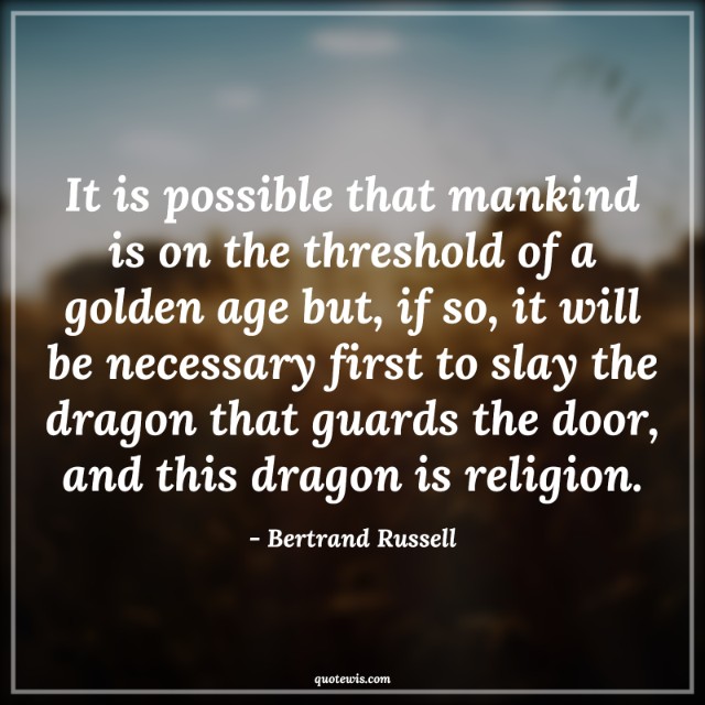 It is possible that mankind is on the threshold of a golden age but, if so, it will be necessary first to slay the dragon that guards the door, and this dragon is religion.