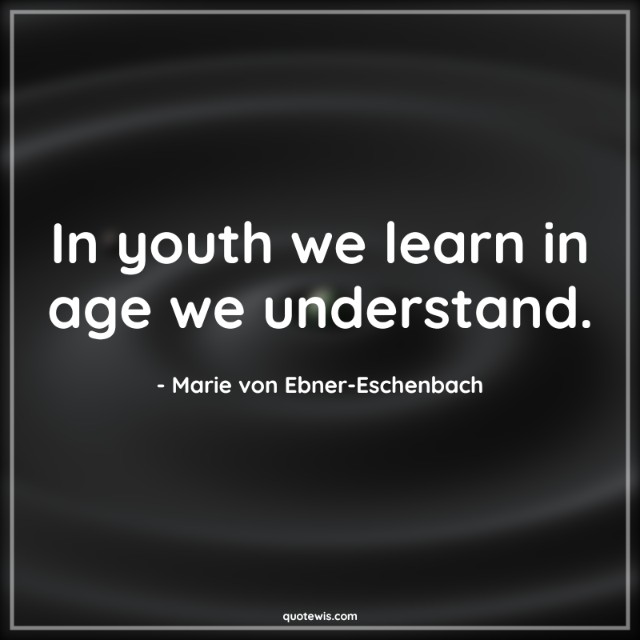 In youth we learn in age we understand.
