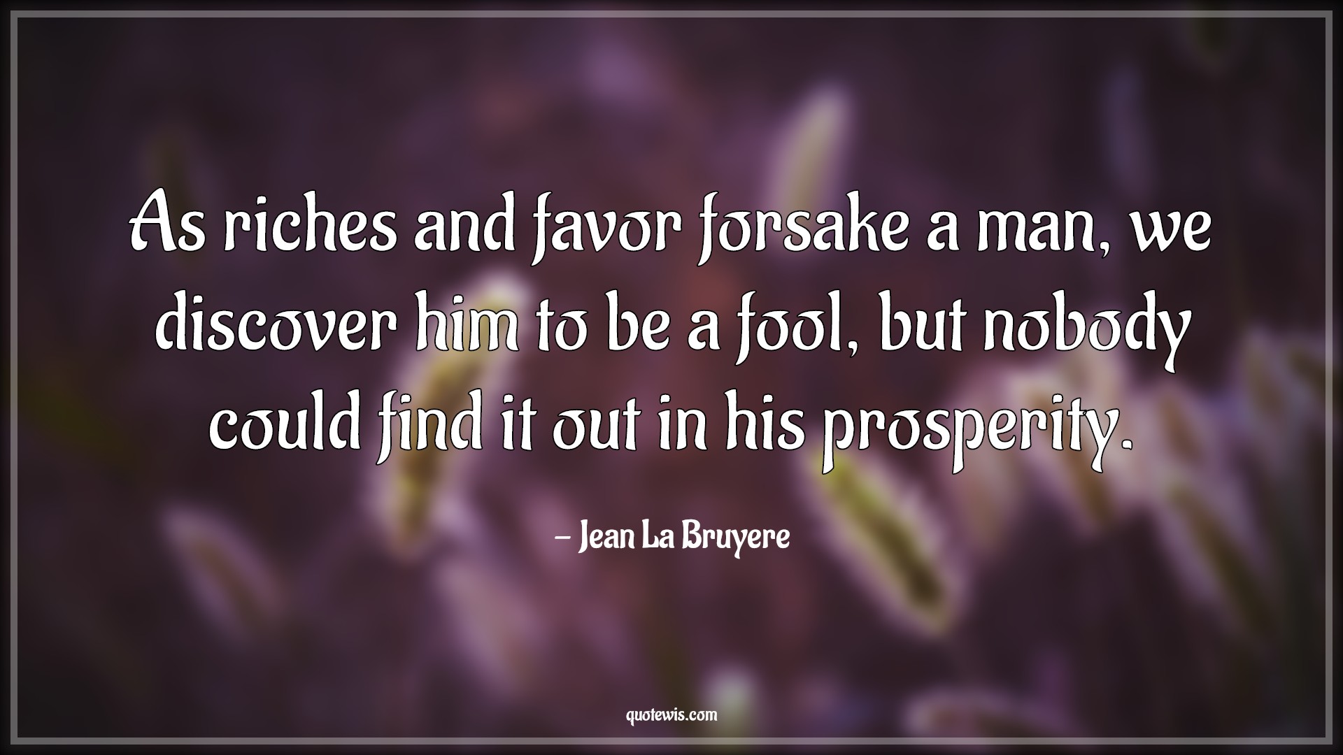 As riches and favor forsake a man, we discover him to be a fool, but nobody could find it out in his prosperity.