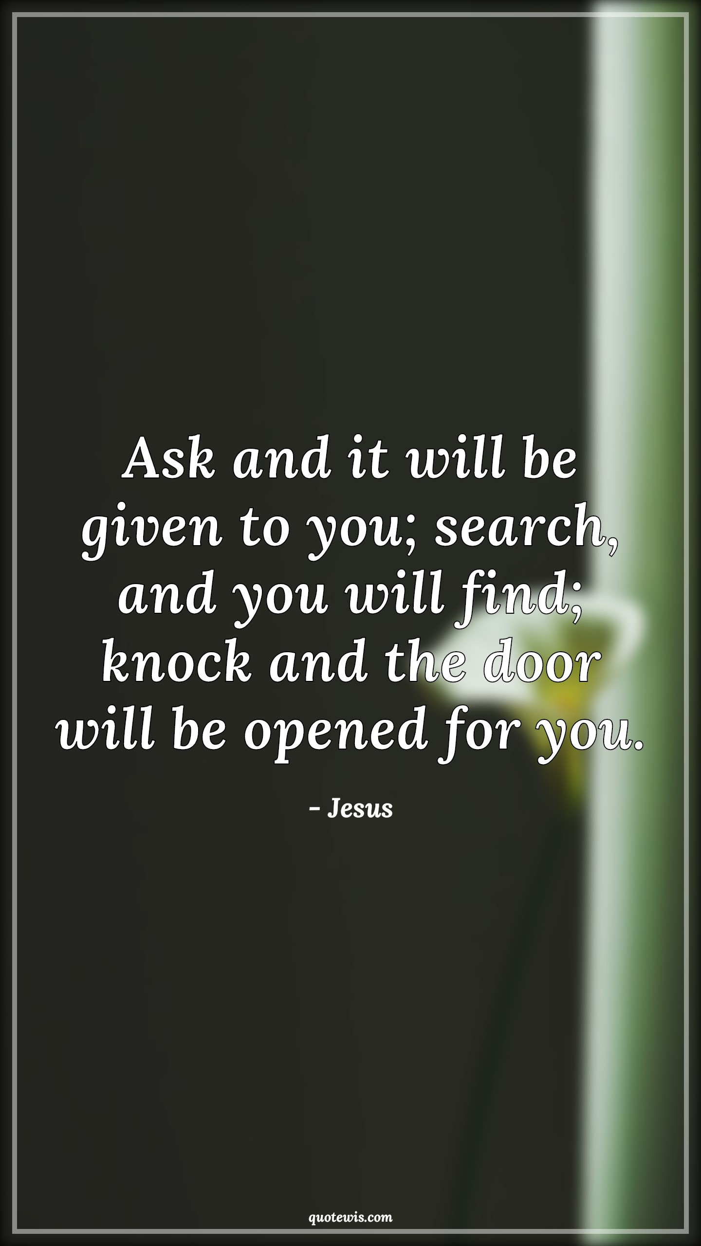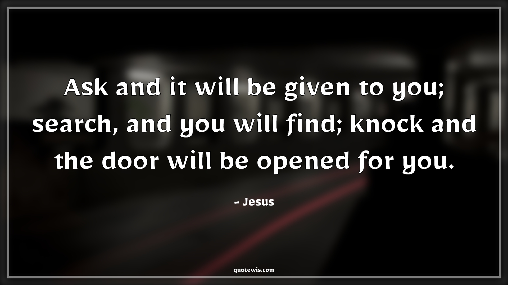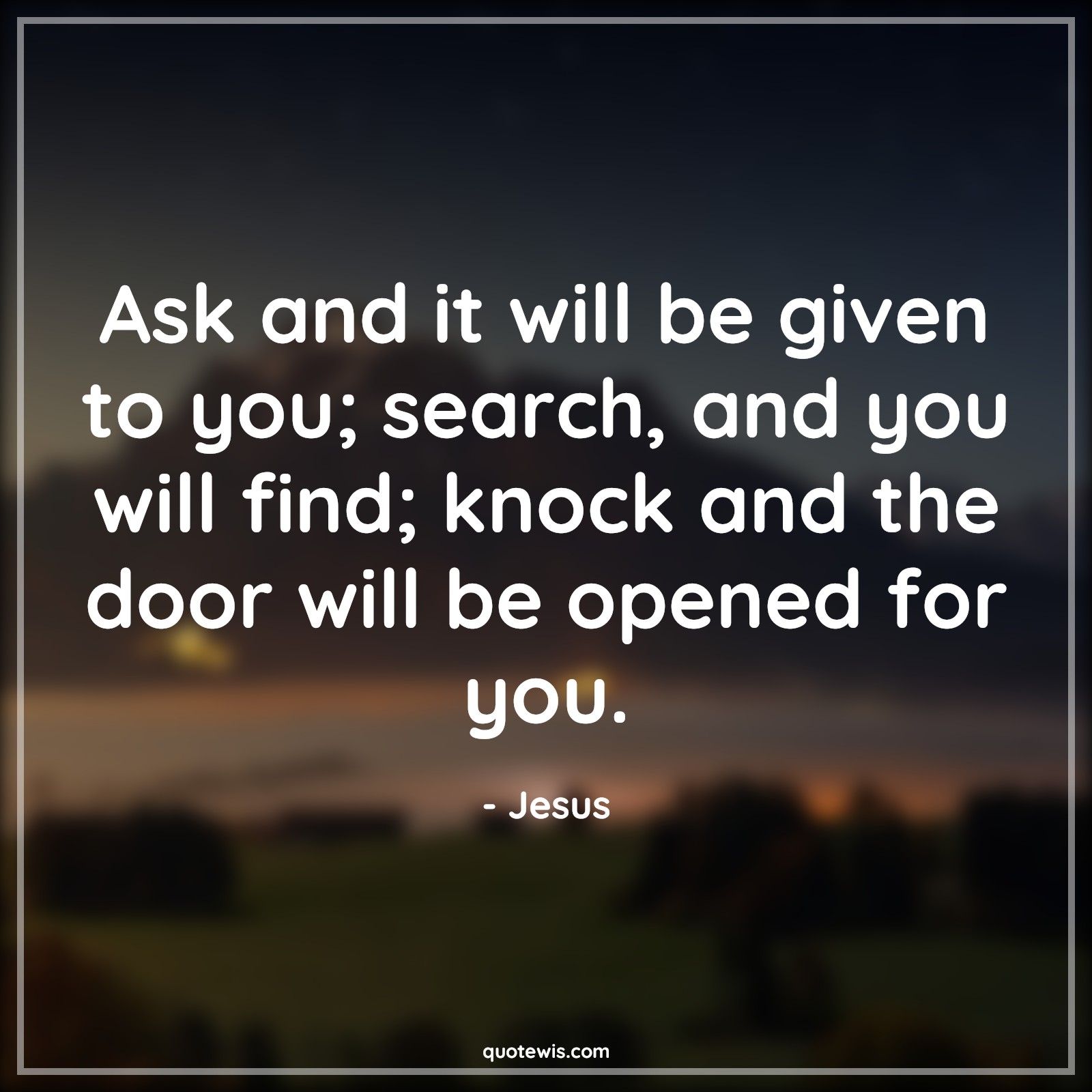 Ask and it will be given to you; search, and you will find; knock and the door will be opened for you.