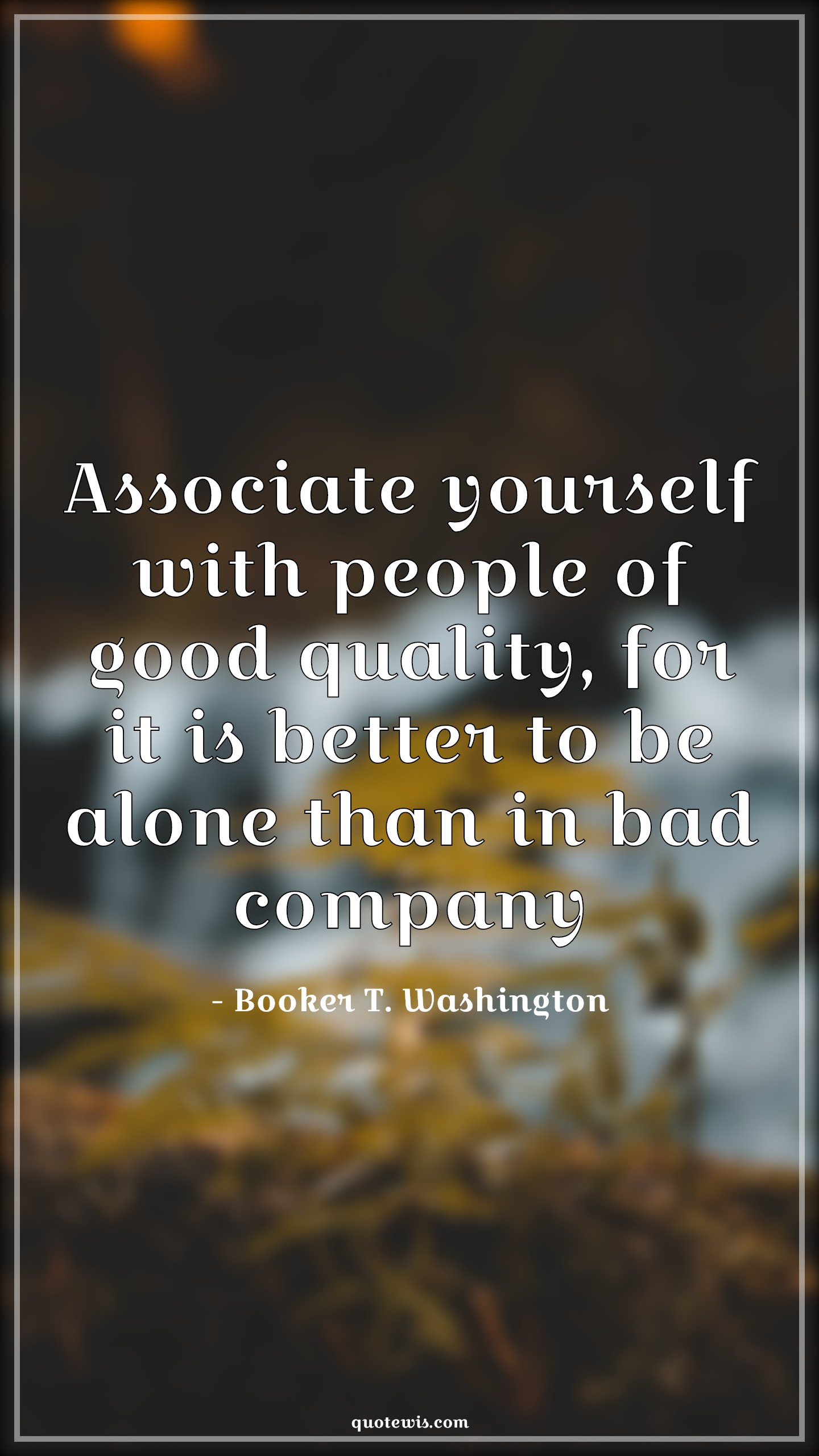 Associate yourself with people of good quality, for it is better to be alone than in bad company