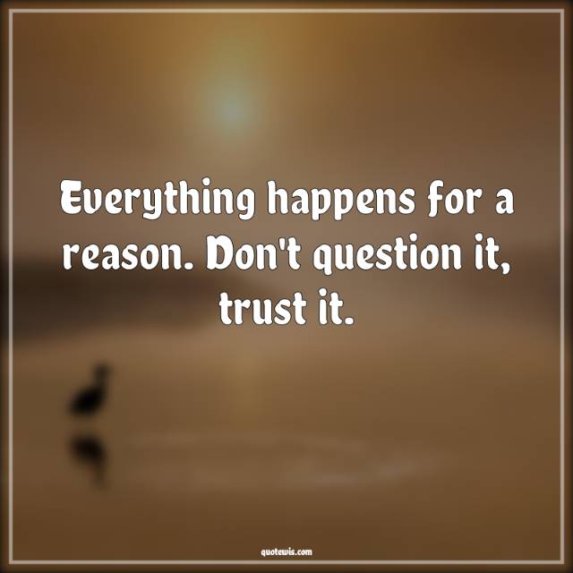 Everything happens for a reason. Don't question it, trust it.