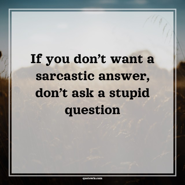 If you don’t want a sarcastic answer, don’t ask a stupid question