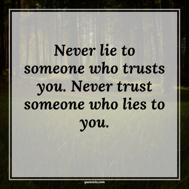 Never lie to someone who trusts you. Never trust someone who lies to you.