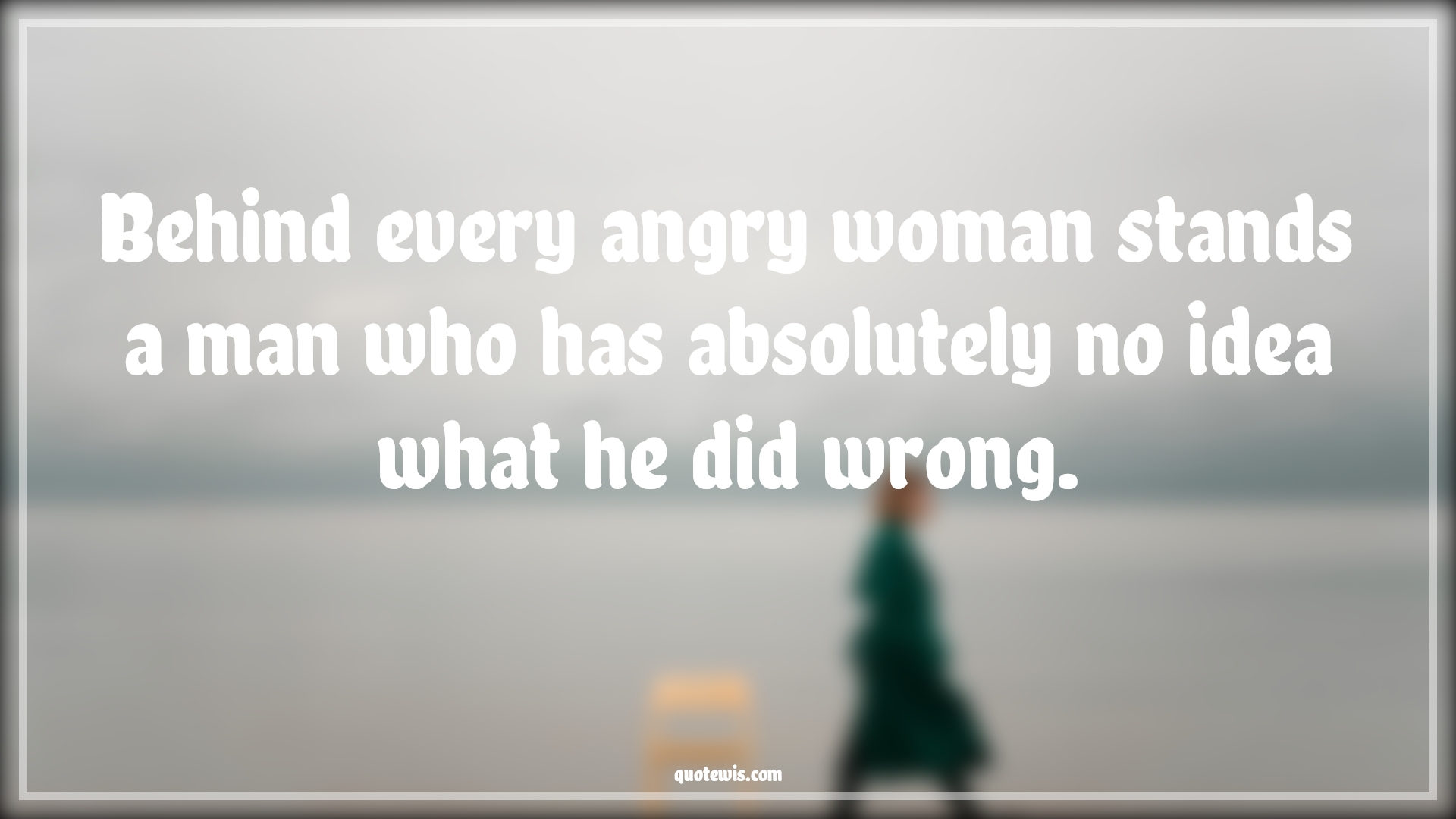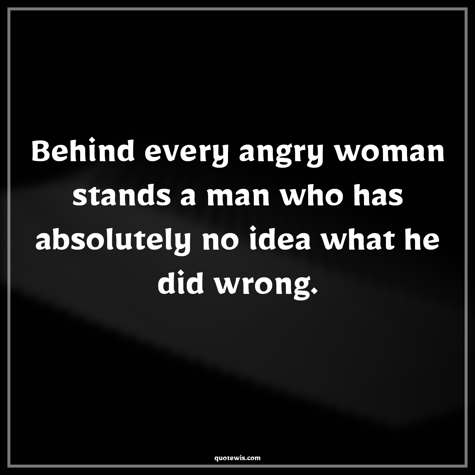 Quotes > Anonymous Quotes > Behind every angry woman stands a man who has absolutely no idea what he did wrong.